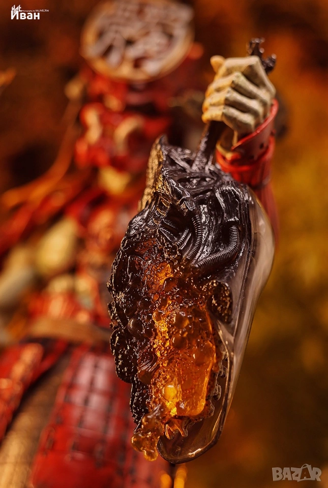 Predator Collectible Figure inspired by Alien vs. Predator. Mr. Takayuki Takeya and Mr. Yuji Oniki encapsulating their visions in the Samurai Predator has marked Hot Toys’ first artist collaboration projects. As an icon of cross-cultural projects, the Samurai Predator first appears in the 2011. Over a decade later in 2024, Mr. Takeya incorporates the concept of “Akazonae” to the new 1/6th scale Akaoni Samurai Predator Collectible Figure, taking over your 1/6th scale collection with a violent storm of red. This time, with a bold color change departing from the initial release, the 1/6th scale Akaoni Samurai Predator Collectible Figure is designed to present to fans an “Akazonae” impression with red dominating the main armor pieces including the helmet, shoulder and chest armors, arms and legs gauntlets and waist armors. Re-imagining the Predator in Alien vs. Predator with a Samurai appearance, the warrior elements are well played out on details through the head with articulated jaw and interchangeable mandibles; sculpted lamellar skirt; weapons including articulated shoulder cannon, metal samurai sword, broken sword to recreate corroded look, set of four swords accessory, Alien tongues trophy and Alien head trophy. The greatly detailed diorama base with Alien’s corpse finely completes the collectible by telling the story of Samurai Predator’s victory over Alien. Product Features 13.77 inches (35cm) 1/6 Scale Made of plastic and fabric Designed by Takayuki Takeya and Yuji Oniki Highly detailed Over 22 points of articulation Box Contents Samurai Predator figure Helmet 2 Mask parts 2 Mandibles 3 Pairs of hands Alternate right hand Xenomorph head Set of articulated blades (attachable to right forearm gauntlet) Broken sword Samurai sword with sheath Set of four swords accessory Alien tongues trophy Diorama base Additional Details Alien vs. Predator Alien vs. Predator is a popular science fiction action franchise that combines two iconic brands, Alien and Predator, into a single continuity. The franchise began in 1989 with a comic book series and then expanded in games and films in the years after. Alien vs. Predator focuses on the onging conflict between the Xenomorphs and the Yautja as they battle it out for supremacy, with humans regularly getting pulled into the conflict.