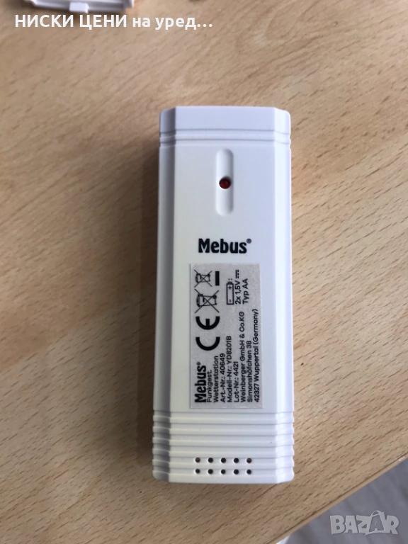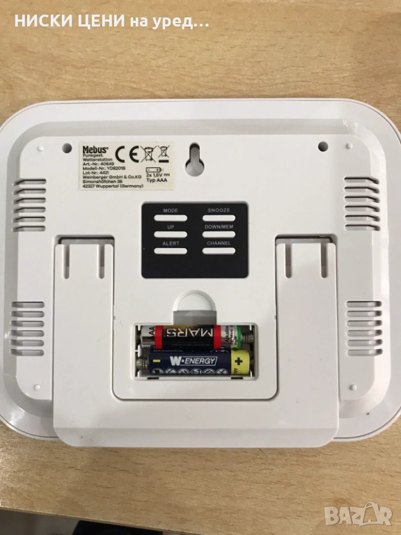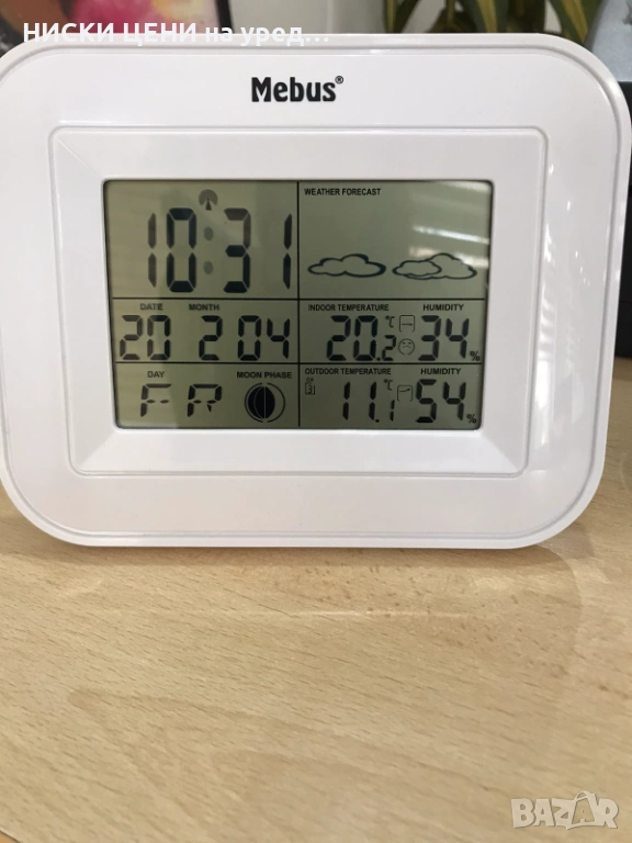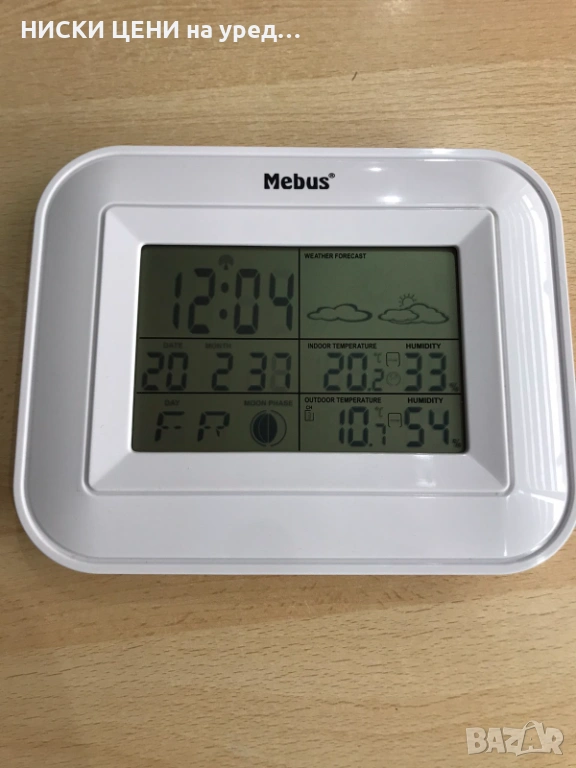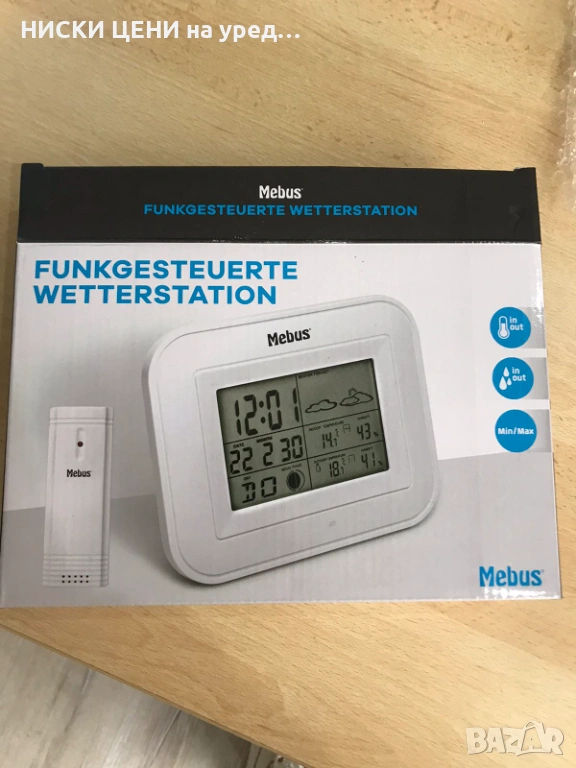 метеорологична станция Mebus , която показва температурата и влажността както в помещението, така и навън чрез отделен безжичен сензор. Уредът предоставя ясна информация за климатичните условия и прогнозата за времето директно на дисплея.