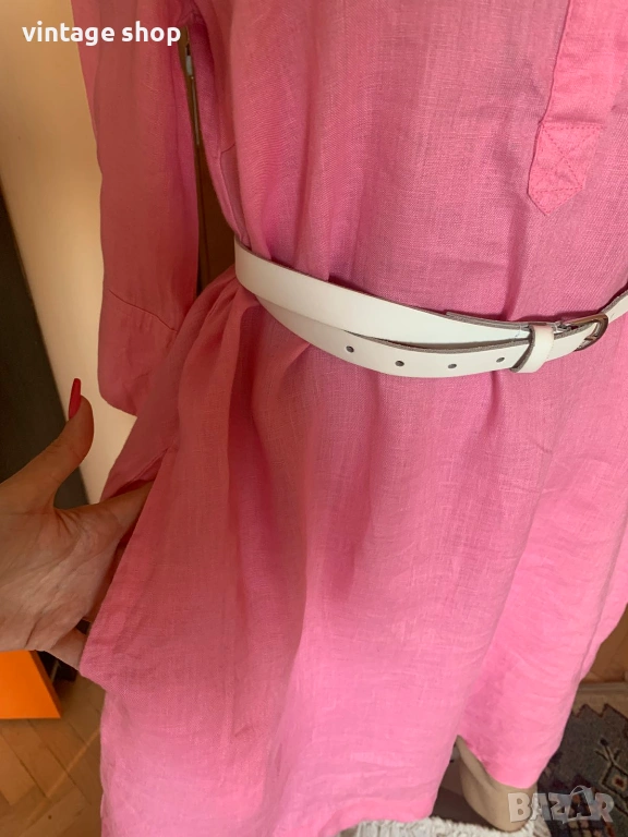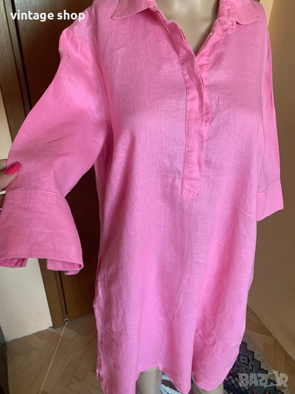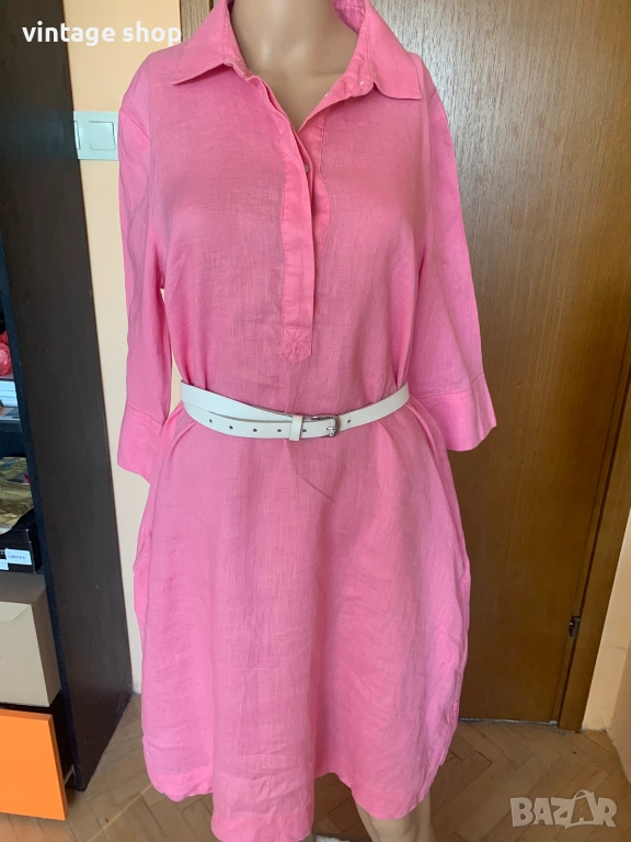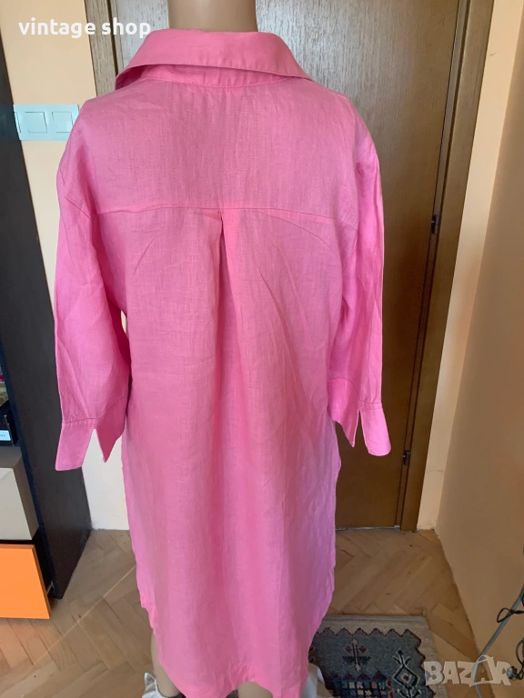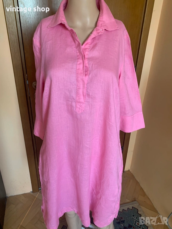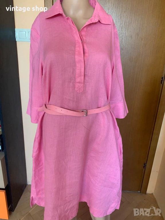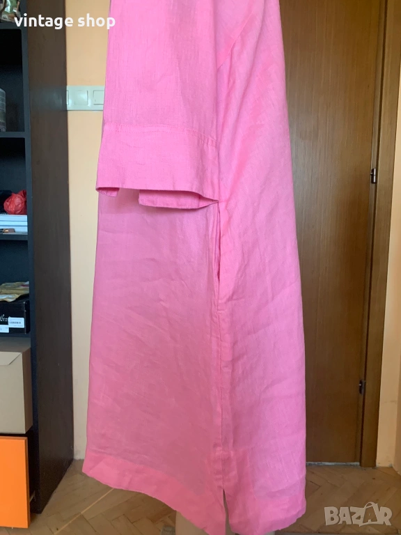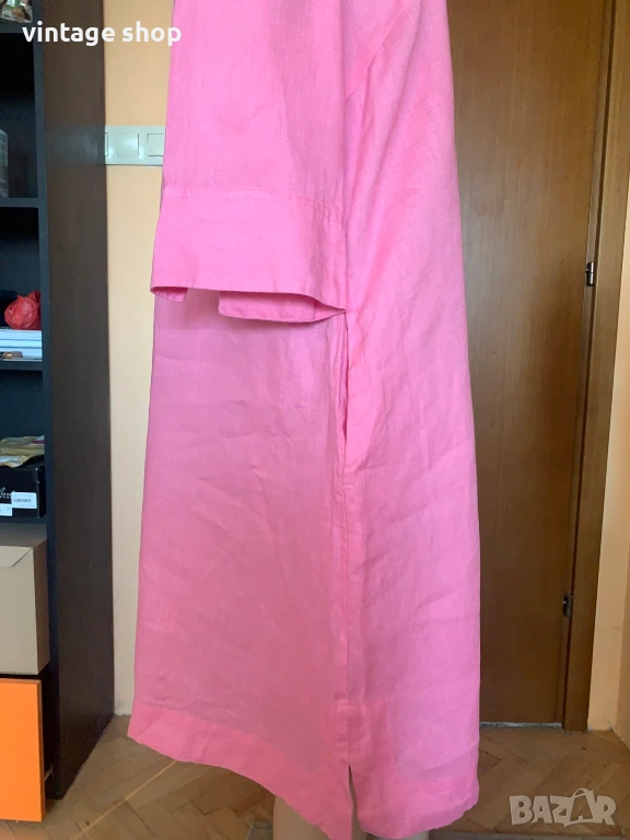 Рокля в наситен розов цвят, изработена от най- дишащата, естествена у подходяща за топлите дни материя- лена.