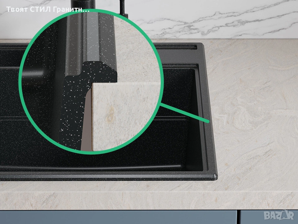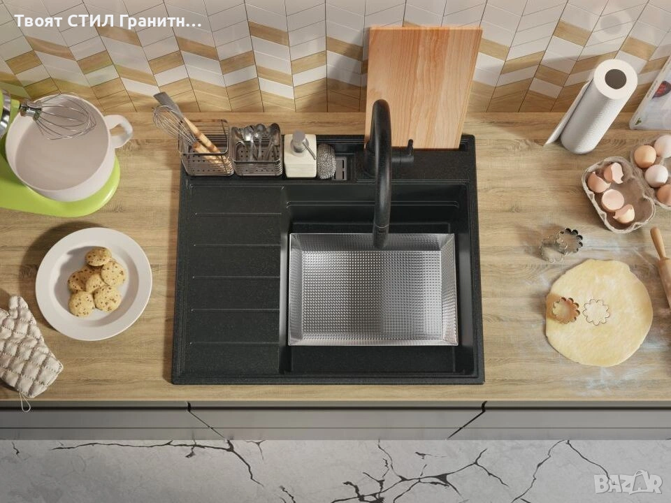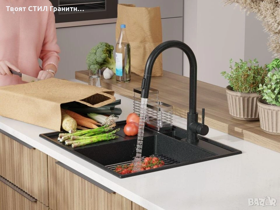 Черният цвят придава на мивката елегантен и съвременен вид, който се комбинира отлично с гранитни смесители, хромирани кухненски смесители или модерни аксесоари за кухня.