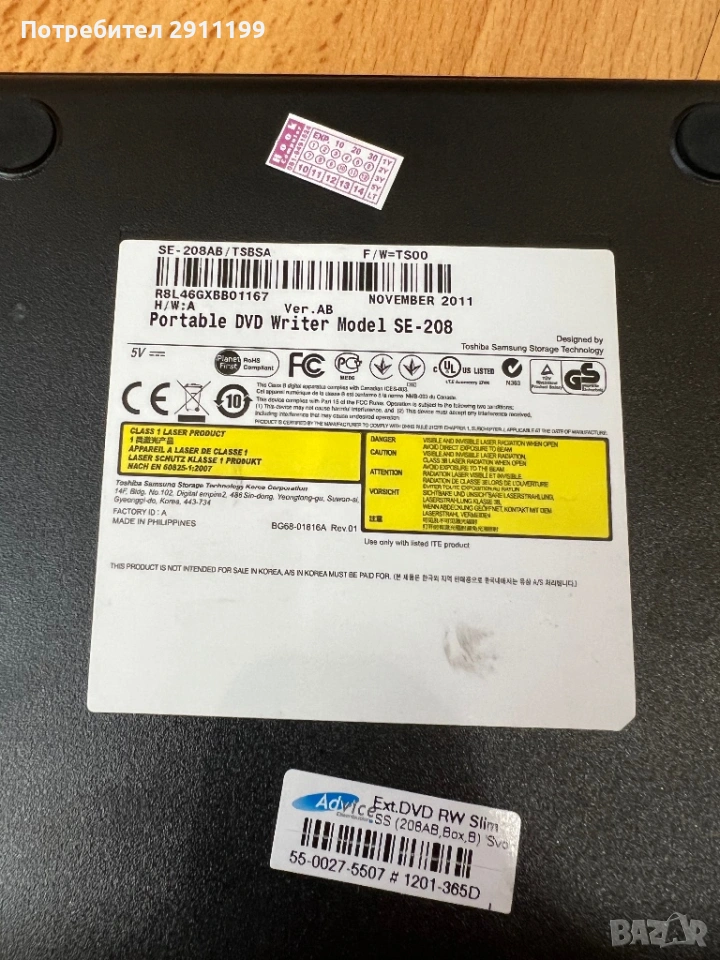 Samsung Portable DVD Writer Model SE - 208 Отлично работеща мултизаписвачка