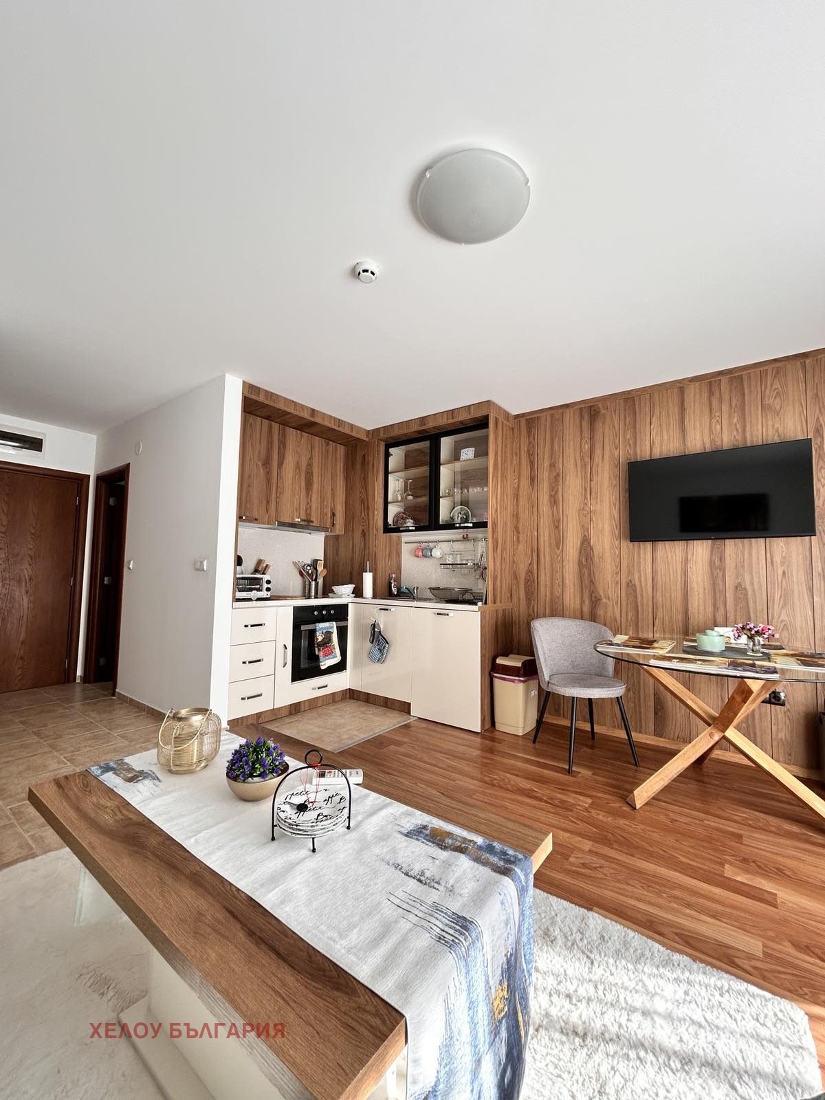 Агенция за недвижими имоти 'Хелоу България' предлага за продажба страхотен дизайнерски обзаведен двустаен апартамент в сграда Пирин сенс, гр. Банско.