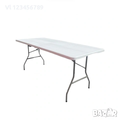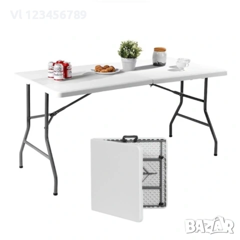 Сгъваема на две маса с размер 180 х 74 х 74 см – за комфортен отдих у дома или на село, отлична за къмпинг, пикник и весело хапване и пийване сред природата. Големите размери на масата спокойно могат да поберат около нея компания от максимум 8 – 10 човека.