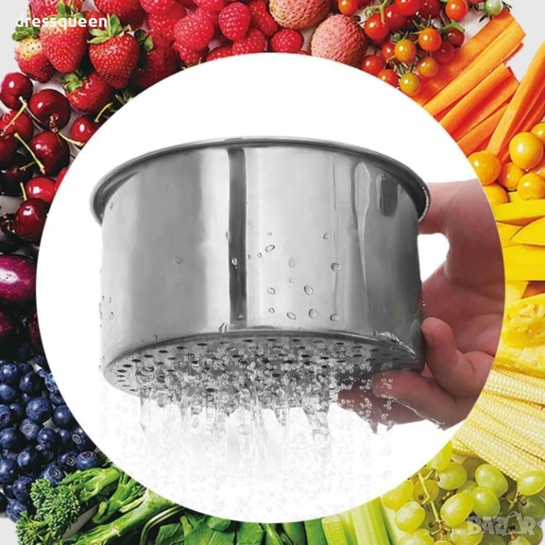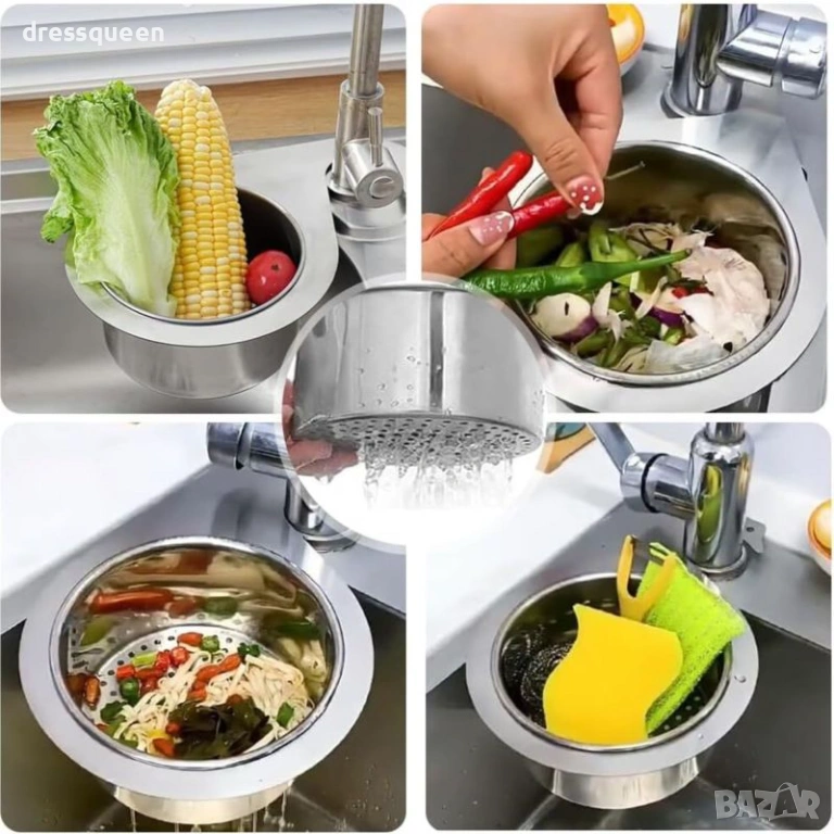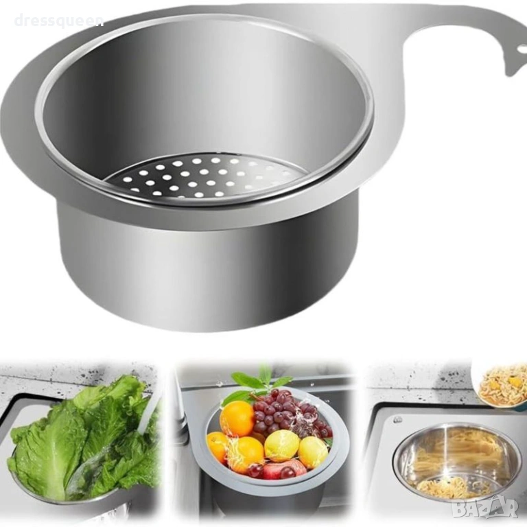 Спестете място и време с нашата практична дренажна кошница за мивка! Този аксесоар елиминира нуждата от държане на цедката по време на работа.
