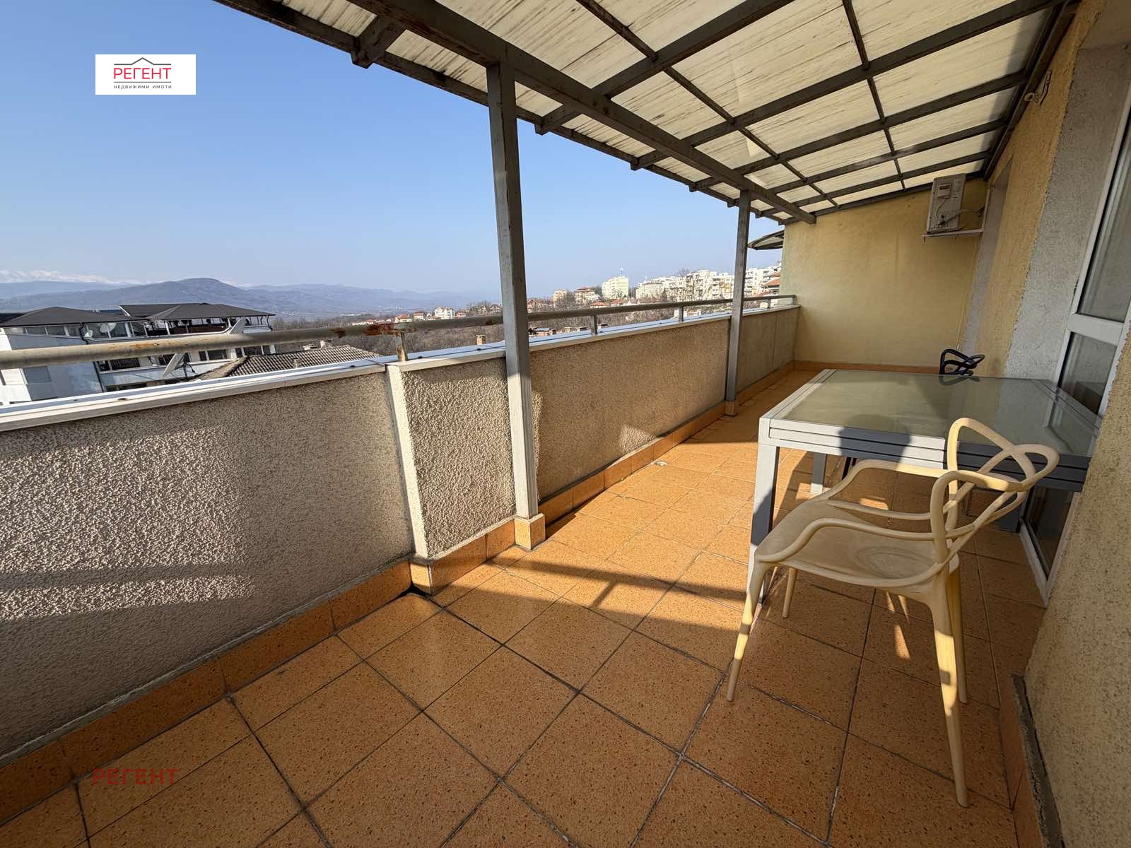 Регент Хоумс предлага под наем уютен двустаен апартамент, разположен в нова модерна сграда. Жилището е в отлично състояние, поддържано с внимание към детайла и готово за нанасяне. Апартаментът разполага с функционално разпределение светла всекидневна с кухненски кът, просторна спалня, баня с тоалетна,голям килер и огромна тераса. От терасата се открива страхотна панорамна гледка, която създава усещане за простор и спокойствие. Сградата е ново строителство с добре поддържани общи части и удобен достъп. Не се колебайте да се свържете с брокер Тихомир Журков на тел. номер 0886 886 888, за да получите повече информация и да организираме оглед