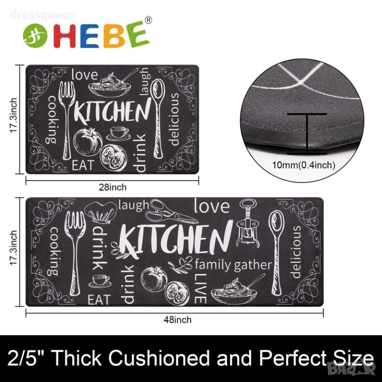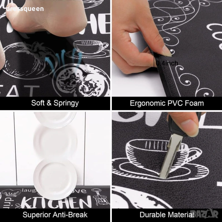 Облекчаване на Напрежението: Подложката от мемори пяна с дебелина около 1 см осигурява ефект против умора, намалявайки натиска върху коленете и глезените, когато готвите дълго време.
