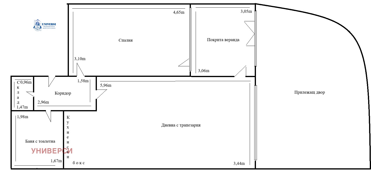 Основно предимство на имота са наличната покрита веранда, както и прилежащия двор, с площ от 34,70м2.