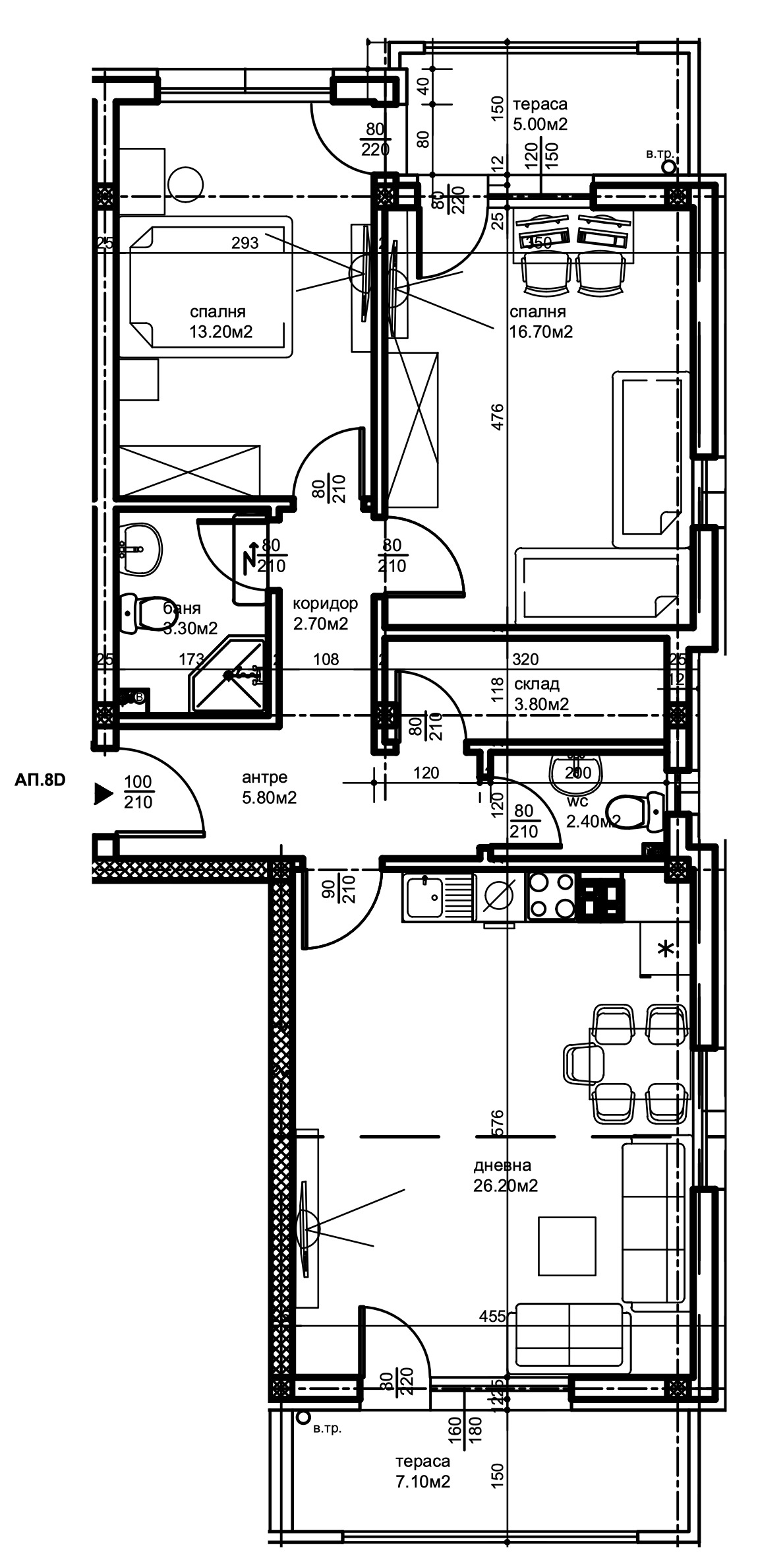 ➡Апартаментът се състои от антре, баня с тоалетна, отделно тоалетна, склад, 2 спални, дневна с трапезария, 2 тераси и е с обща площ от 115,41 кв.м.