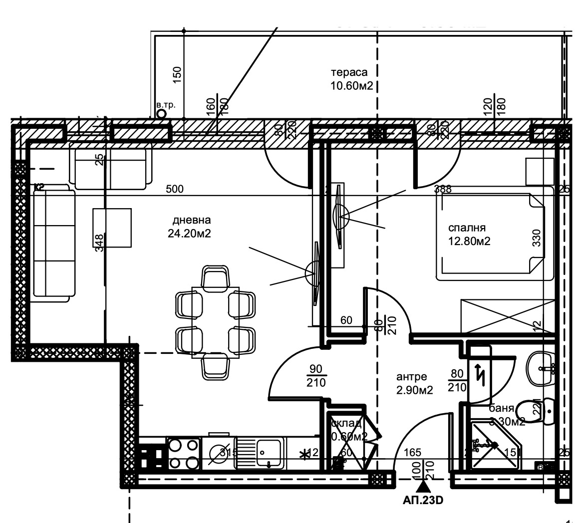➡Апартаментът се състои от антре, баня с тоалетна, склад, спалня, дневна с трапезария, тераса и е с обща площ от 67,78 кв.м.