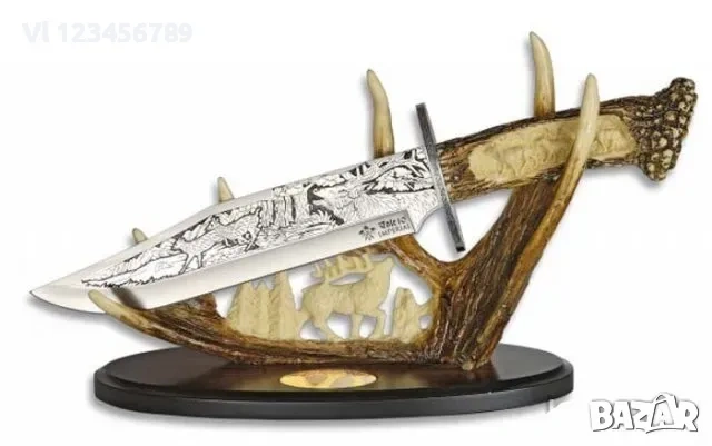 Огромен гравиран ловен нож 23 х 38см (елен)