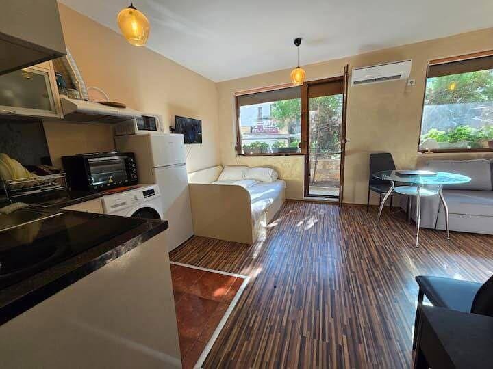 Намира се в близост до хранителен магазин, автобусна спирка, училище и на пешеходно разстояние от плажната ивица.