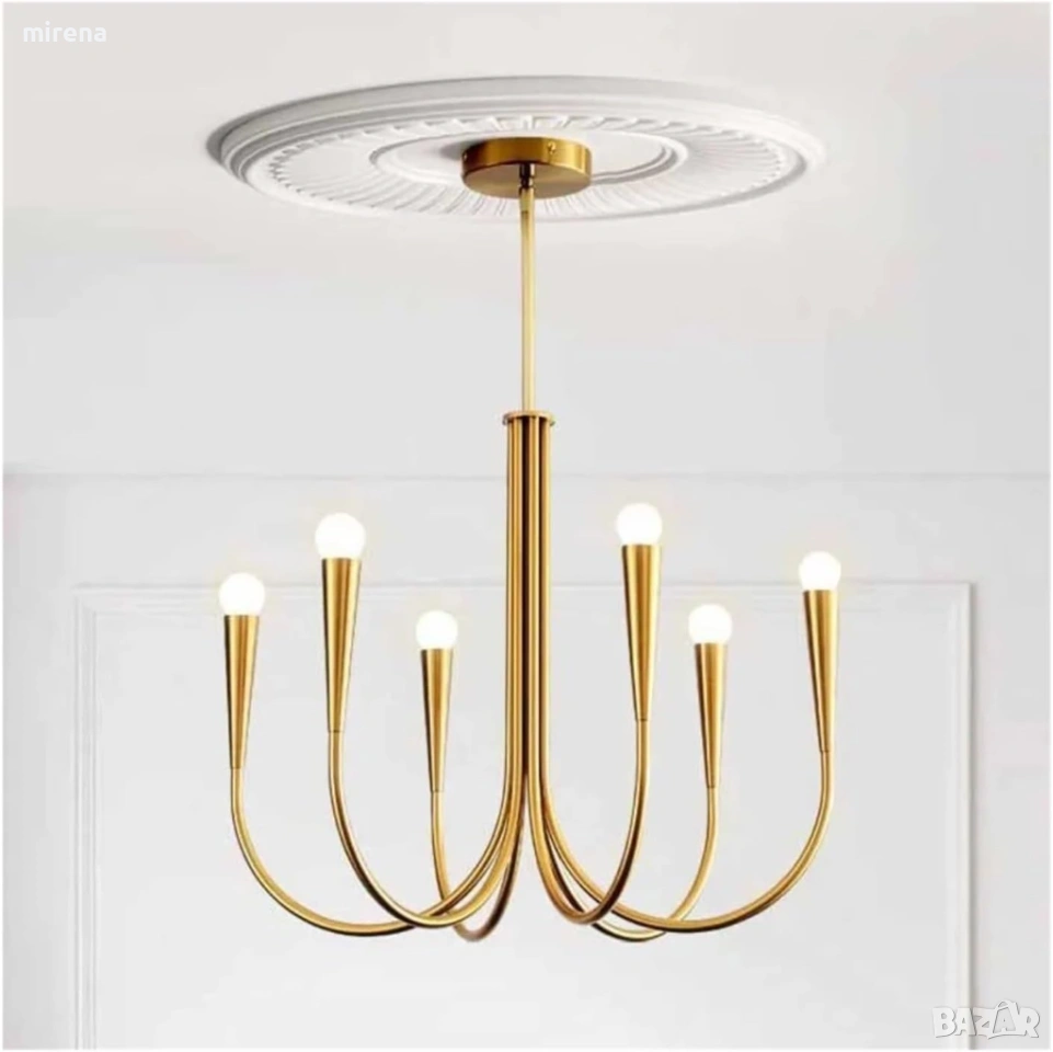 Златен полилей трапезария 6 тела Модерен Ретро рустикален н232