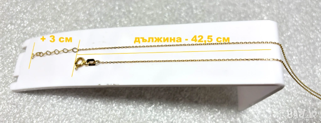 • Изделието притежава държавна марка/титър/ за съдържанието на благороден метал в сплавта-злато/проба-585/