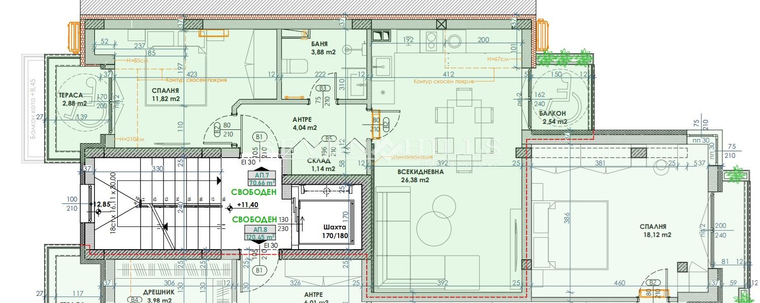 Жилището, което представяме има следното разпределение: просторна всекидневна с кухня и трапезария с излаз към балкон, родителска спалня с директен излаз към тераса, втора спалня с излаз към втора тераса, баня с тоалетна, антре, склад.