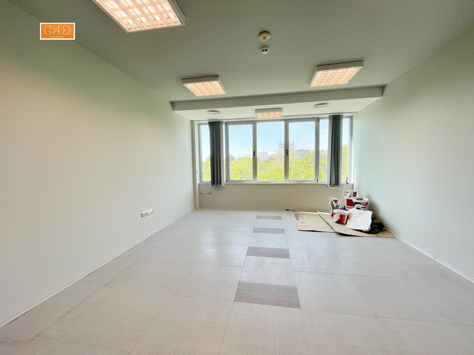 Grado property предлага офис с четири отделни помещения, голям коридор, голямо санитарно помещение. Светли и просторни помещения, квадратурата на които е описана в последната снимка.Голям паркинг за свободно паркиране.Сградата е със СОТ.