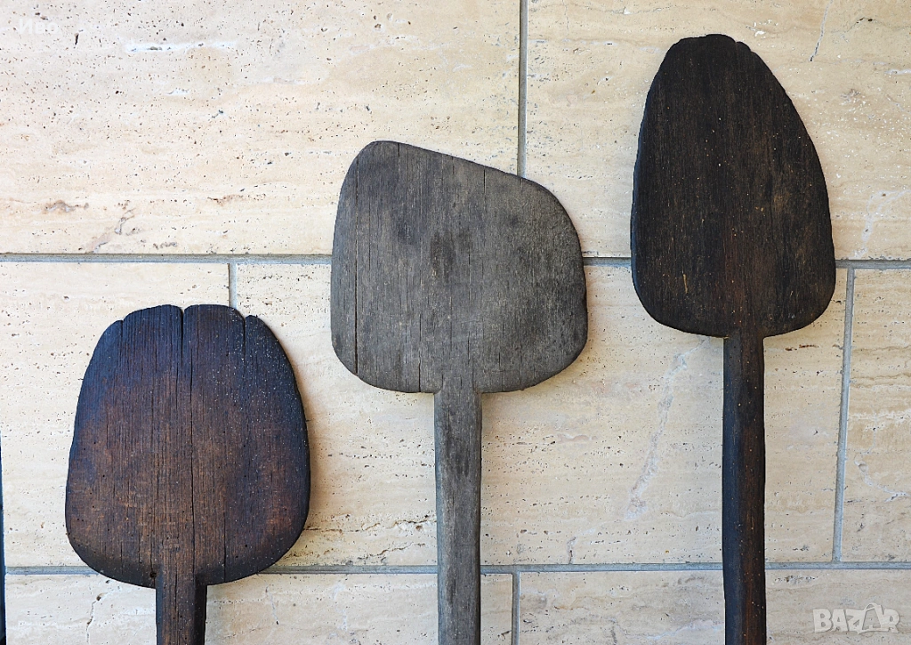 Върнете се назад във времето с тези забележителни антични дървени лопати, ръчно изработени в България в края на 19-ти век. Някога практични инструменти от ежедневието в селския живот, а сега са автентични артефакти на българското майсторство и история.