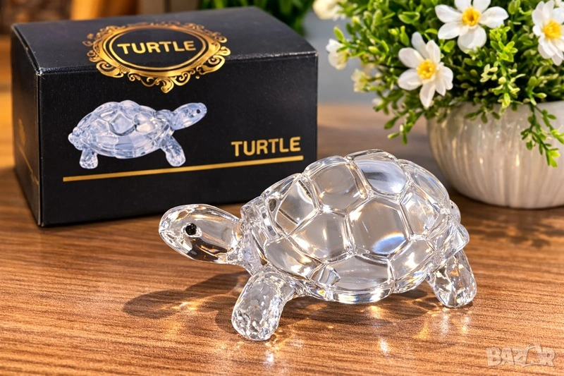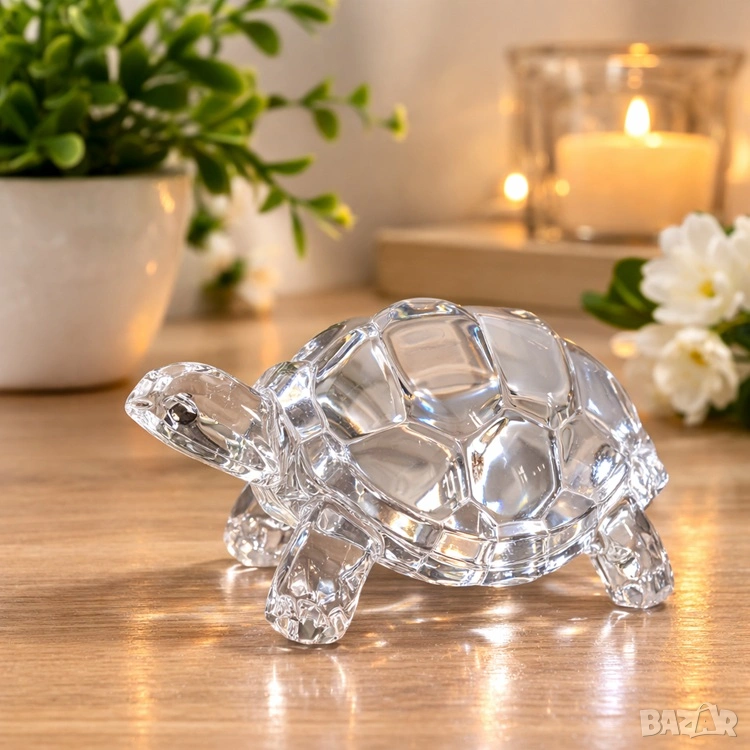 декоративна стъклена фигурка костенурка, подходяща за украса на дома или