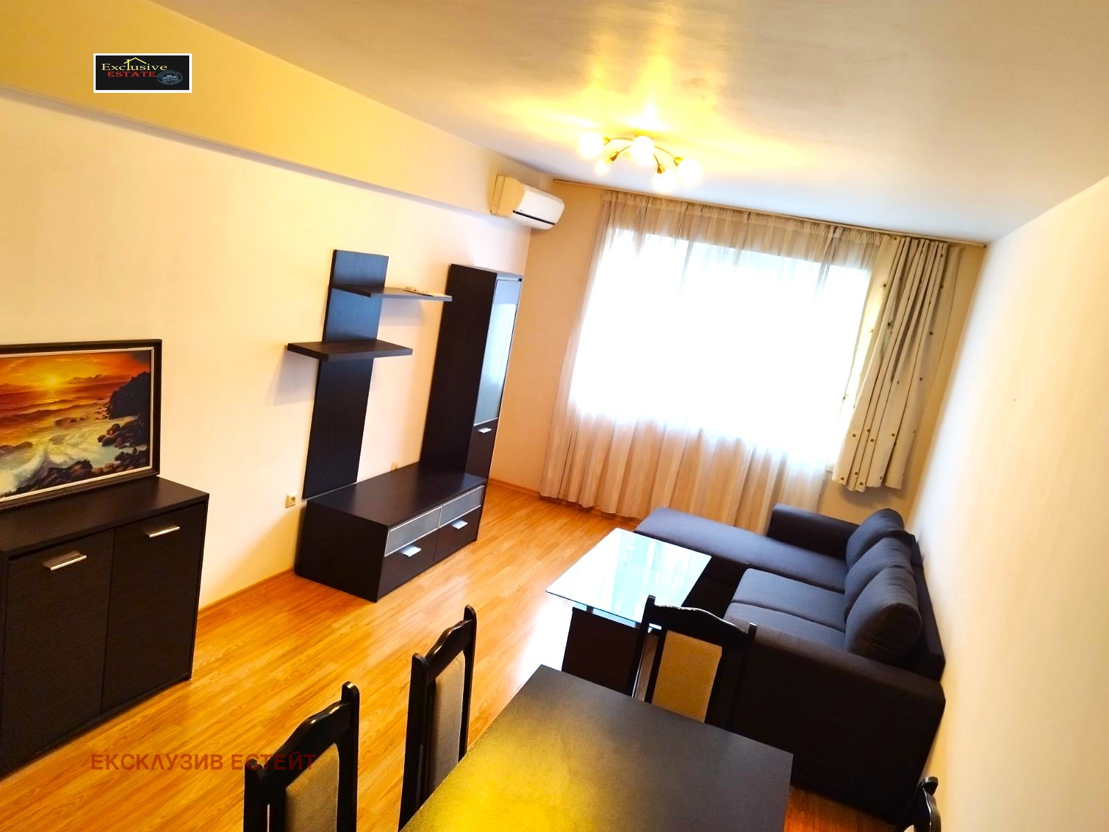 Exclusive estate предлага ЕКСКЛУЗИВНО под наем тристаен тухлен апартамент. Имотът е напълно обновен и ремонтиран, обзаведен с всички необходими мебели и електроуреди се състои от дневен тракт с кухнеска част, трапезария и холова част, две спални всяка с тераса, баня, тоалет и перално помещение. Разполага с два климатика монтирани в дневния тракт и една от спалните. Жилището е свободно за нанасяне. ПАРКОМЯСТО ВКЛЮЧЕНО В ЦЕНАТА! Ключ в офиса!