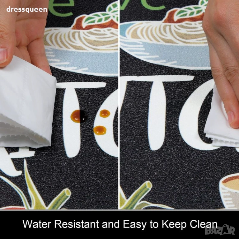 Максимална Защита: Водоустойчивата пътека за кухня предпазва подовите настилки от разливи, петна и износване. Повърхността може лесно да се забърше.