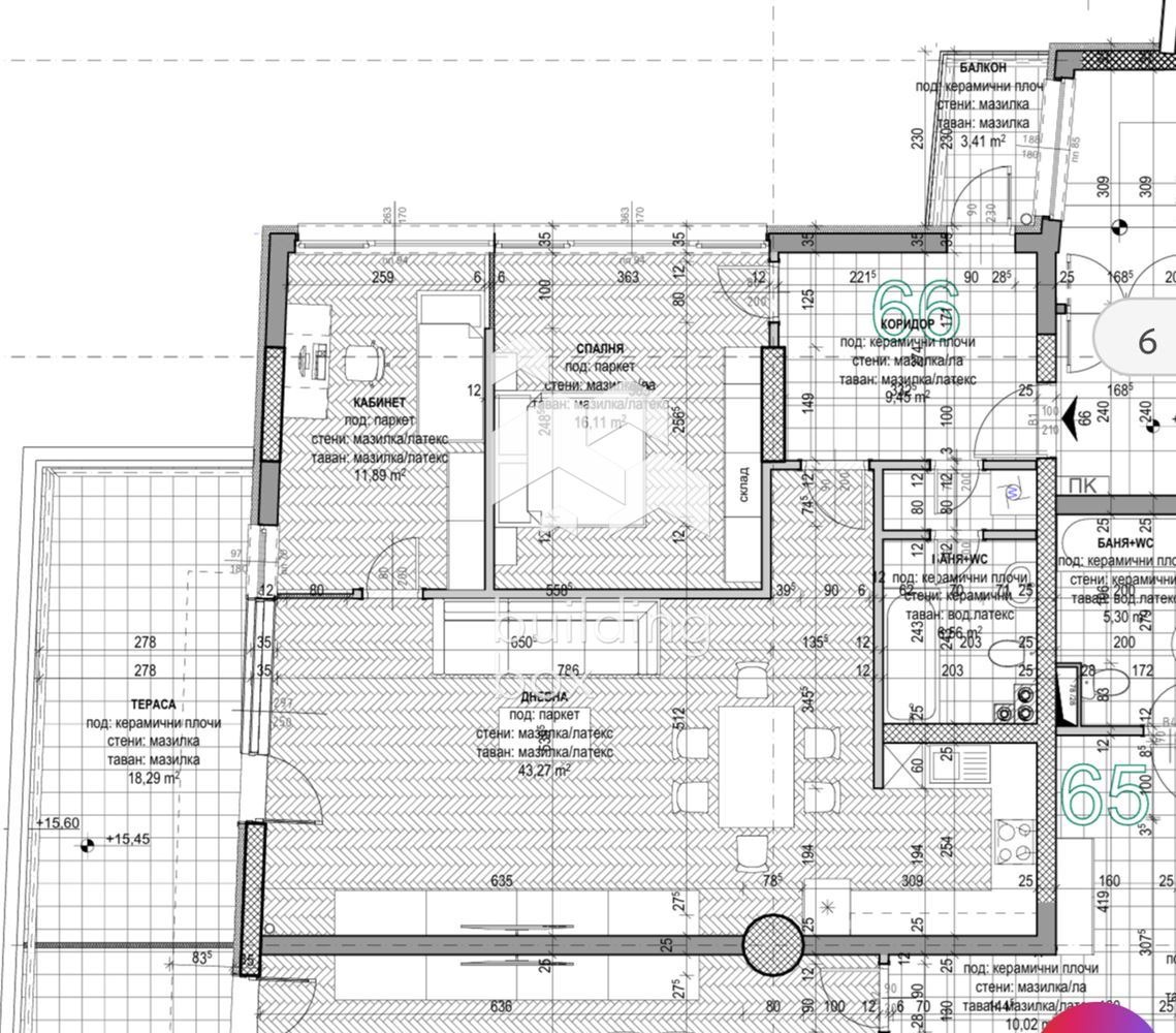 - Спалня - 16 кв.м.;