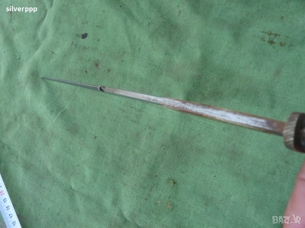 Здрав, без луфт и кривини. Размера се вижда. Дебелината на острието