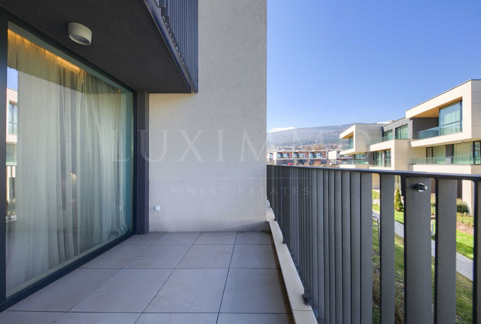 Апартаментът се намира на втори етаж в нова сграда с асансьор Orona и добре поддържани общи части. Комплексът предлага контрол на достъпа, видеонаблюдение, озеленена среда, езеро и детска площадка. От сградата има директен пешеходен достъп до Sofia Ring Mall, който се достига за около две минути.