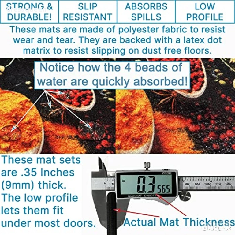 Функционалност: Основата е противоплъзгаща, което ги прави идеални килимчета за пред кухненски плот.