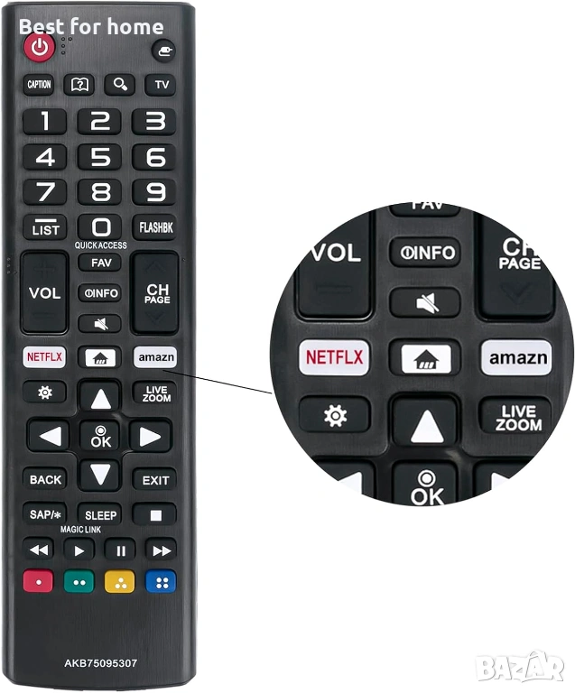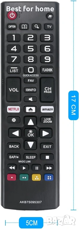 Дистанционно управление AKB75095307, подходящо за LG LED LCD телевизор 43UJ6500, 43UJ6560, 49UJ6500, 49UJ6560, 55UJ6520, 55UJ6540, 55UJ6580, 60UJ6540, 24lm520d, 24LM520S, 28lm520s.