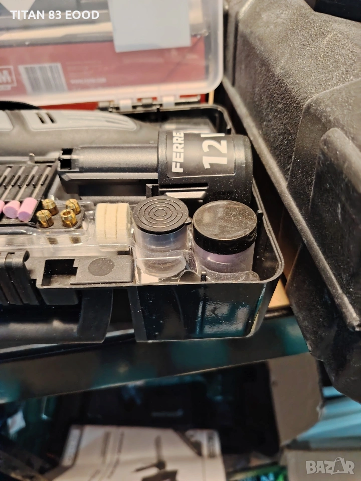 Комплект: Включва куфар за съхранение и множество аксесоари за различни задачи.