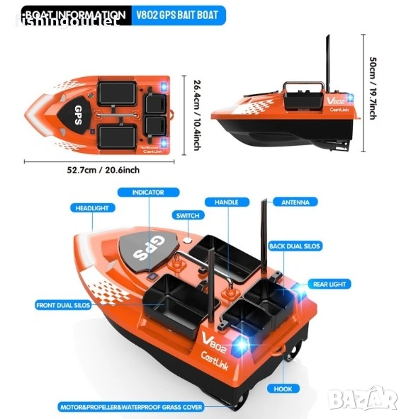 Новата FlyTec V802 Pro с GPS навигация, разполага с 160 позиции, обхват до 500 m, 4 отделни контейнери и автопилот с мощни мотори – идеалният помощник за шаранджийски или друг риболов.