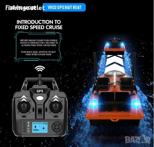 Лодка за захранка V802 4 Резервоара, 3kg, 500m обхват, скорост 15km/h