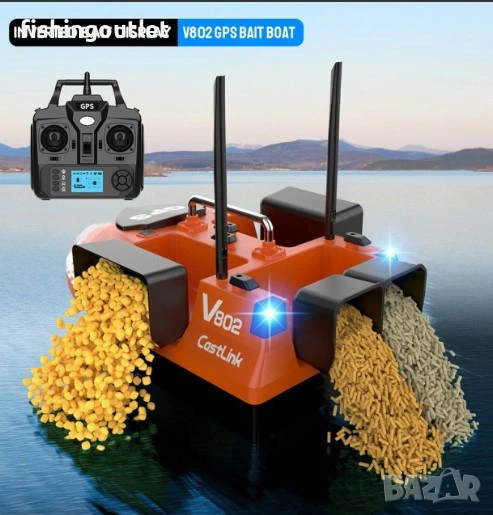 FlyTec V802 PRO GPS 12000mAh, 160 точки гпс има вграден жироскоп, който автоматично коригира отклоненията в управлението, причинени от вятъра, вълните или неравномерното разпределение на стръвта.