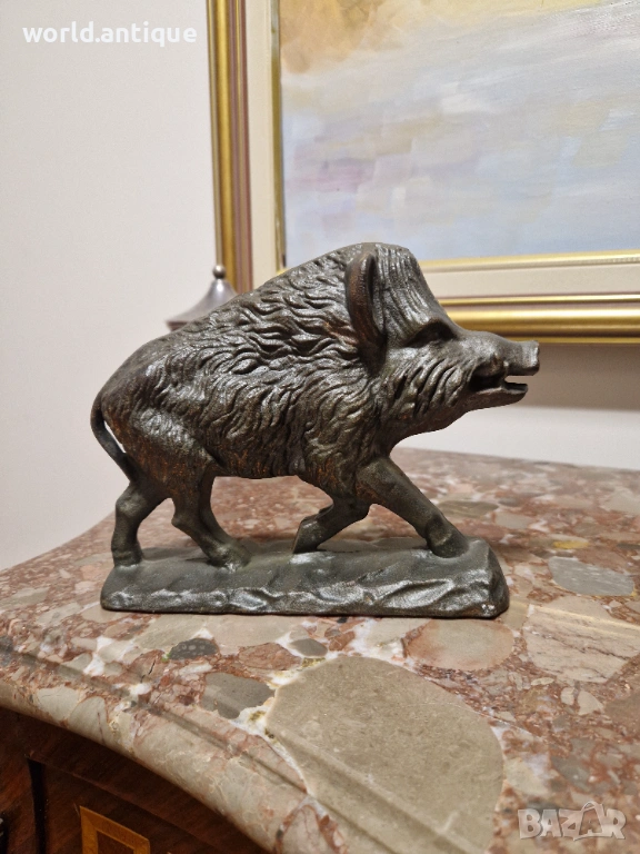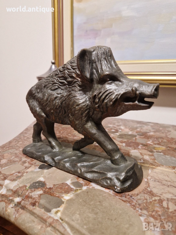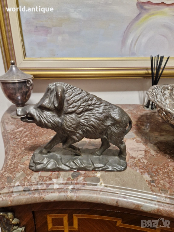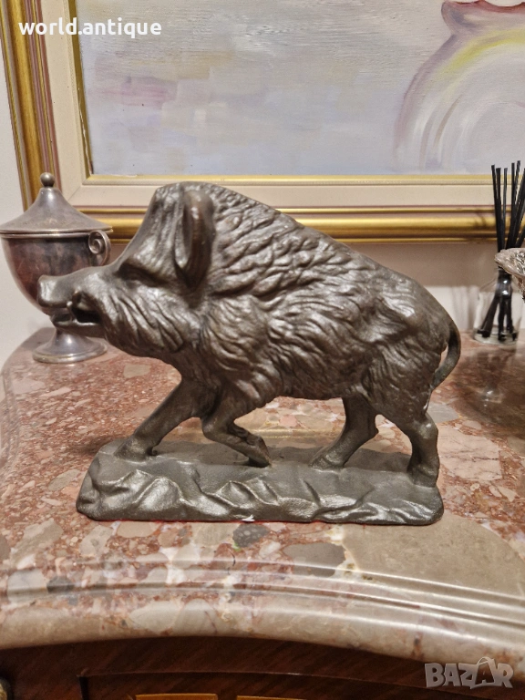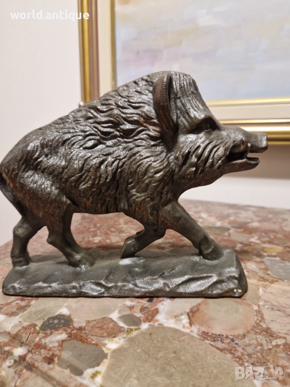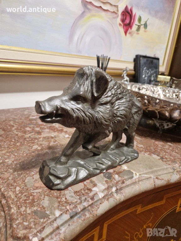 Продавам уникална антикварна колекционерска метална фигура от плътен чугун в перфектно състояние без никакви забележки. Тежка здрава масивна 3.5 кг. Размери дължина 20 см височина 15 см и ширина 6 см. Работя с всички куриери. Отговарям бързо.