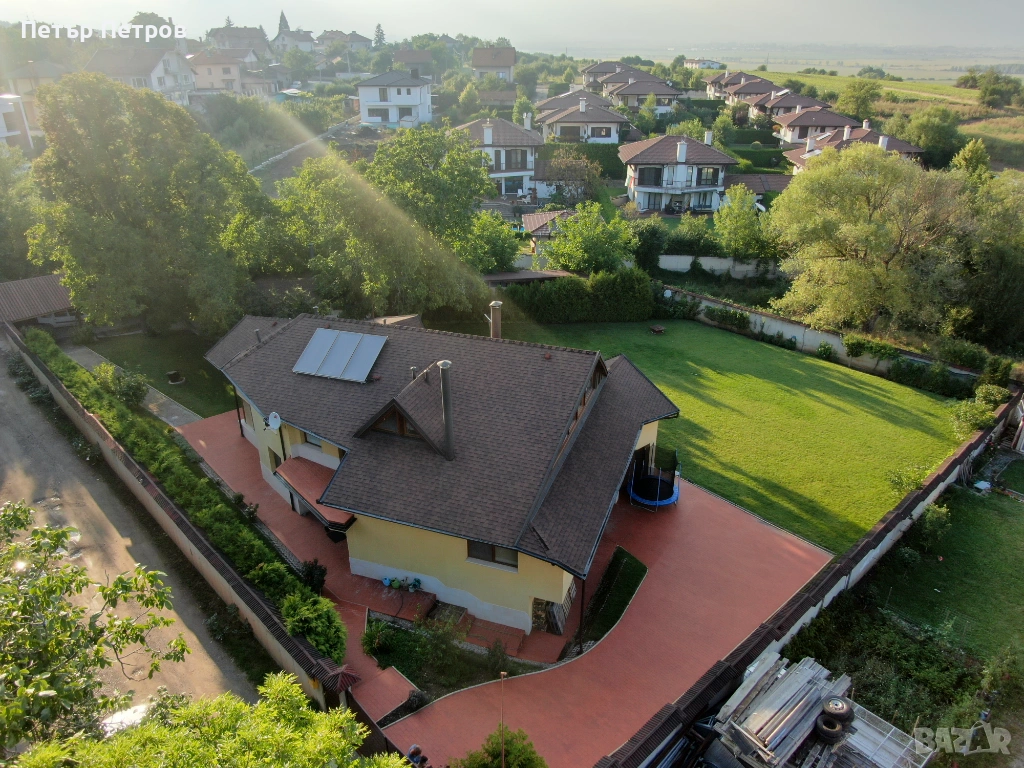 са декар и половина двор с лятна кухня, мобилно барбекю, надуваем замък, сервизни