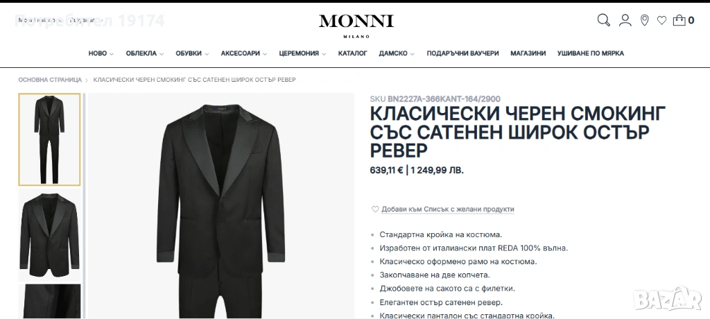 Смокинг черен със сатенен MONNI Milano → Обява 53815891
