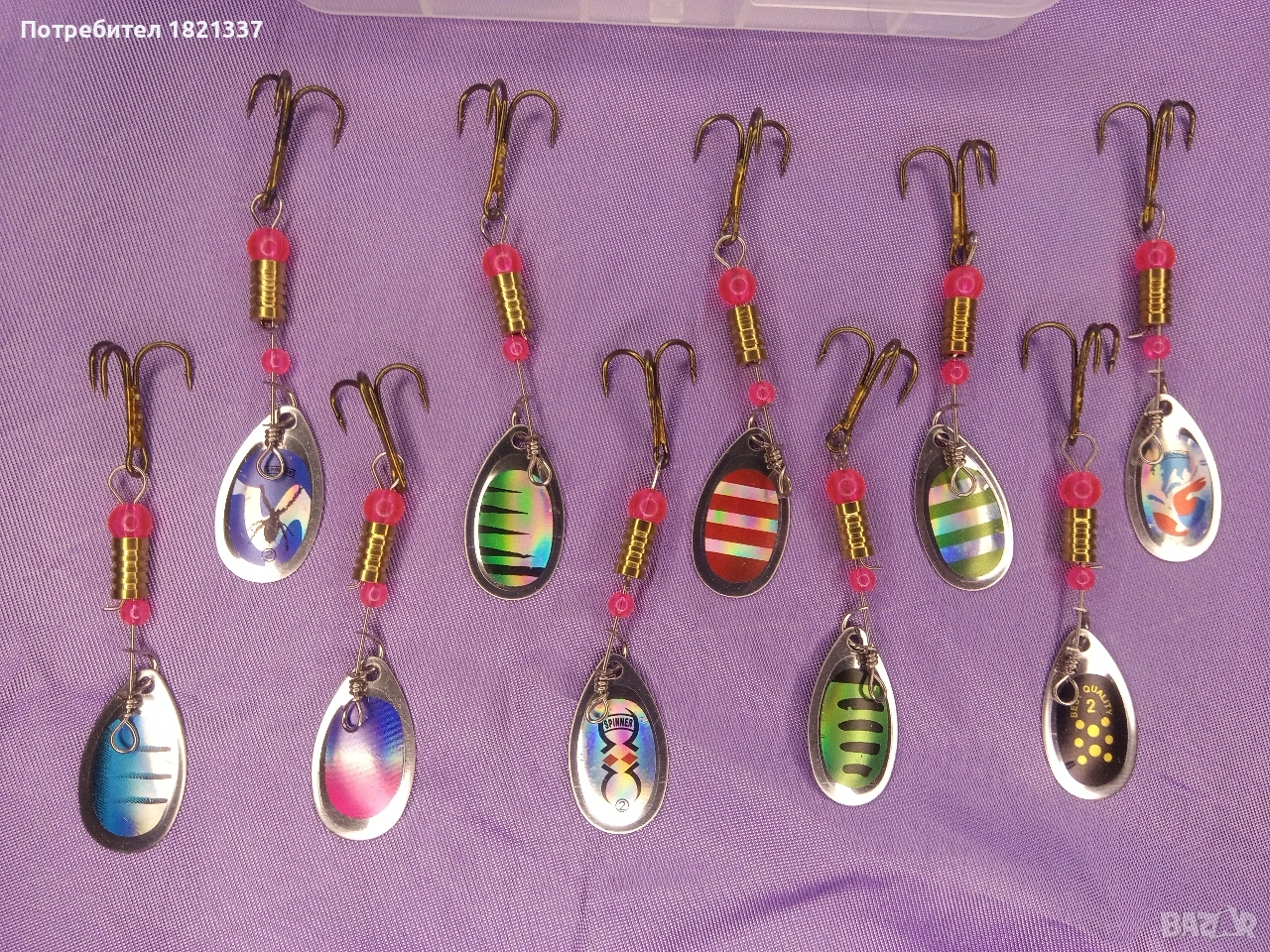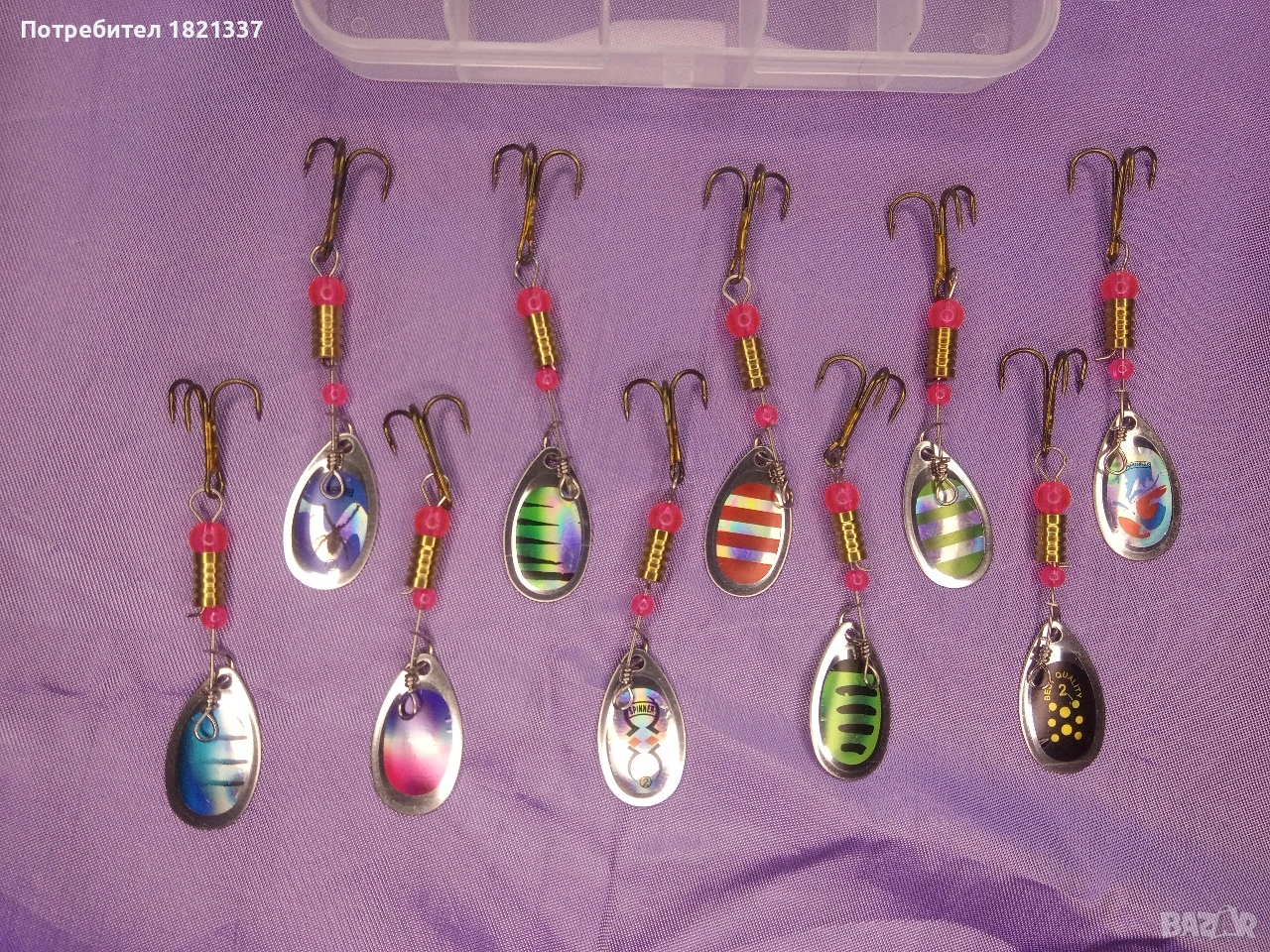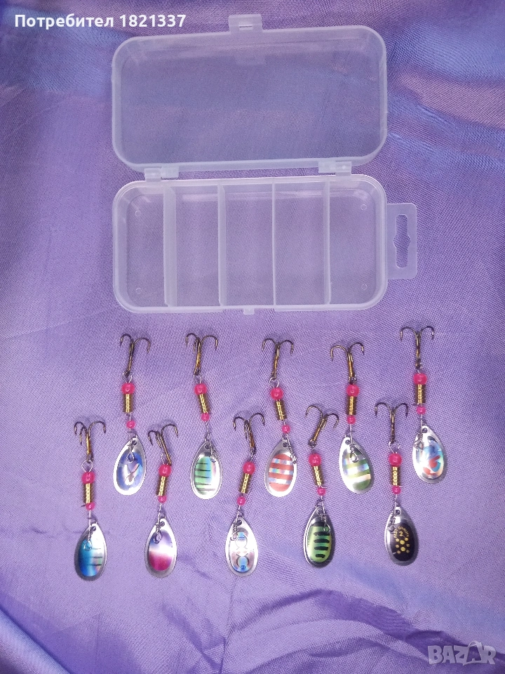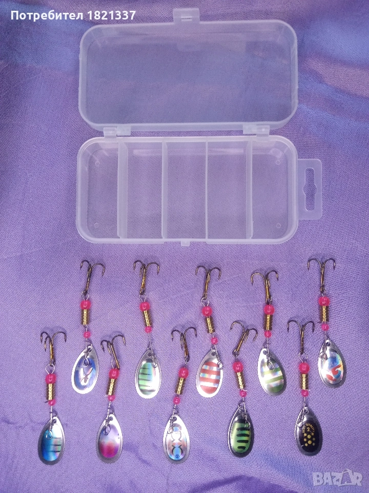 Комплект блесни за риболов. 10 броя блесни с кутия.