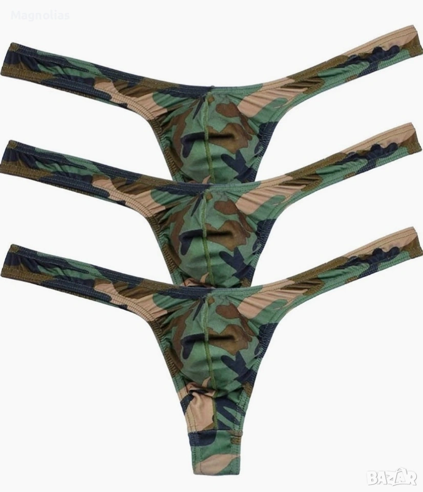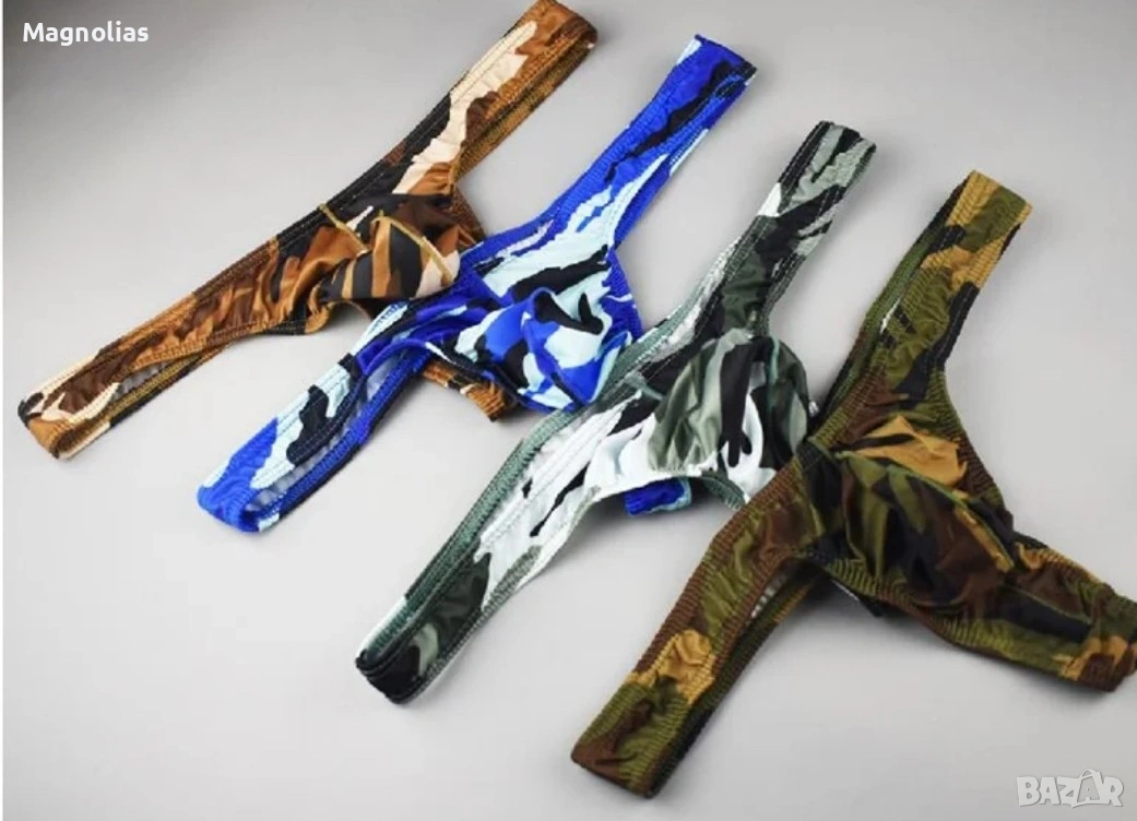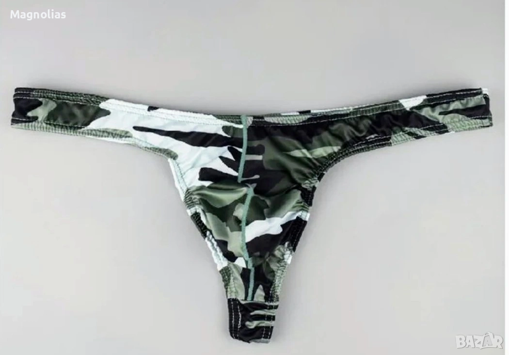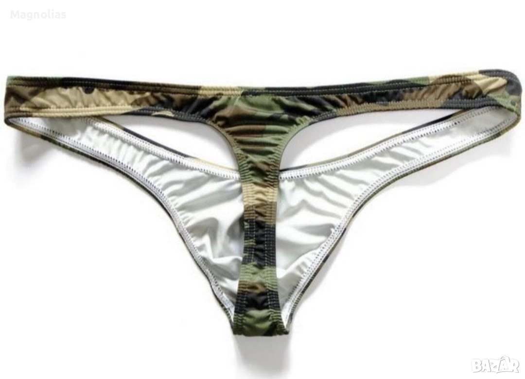 Допълнителна информация: Men’s G Stirng Underwear T Back Искате да кажете, че никой не може да носи това? Погрешно, мъжките прашки стават все по-популярни. Те могат да се използват за ежедневно носене или за еднократна афера. Те са с Камуфлажен десен и най-вече Жените ги Купуват за Мъжете си като забавен подарък. Размерите са само за ориентация! Показани са точните размери - L / - 70 - 85. XL - 90/95 кг. Цена Не Се Коментира