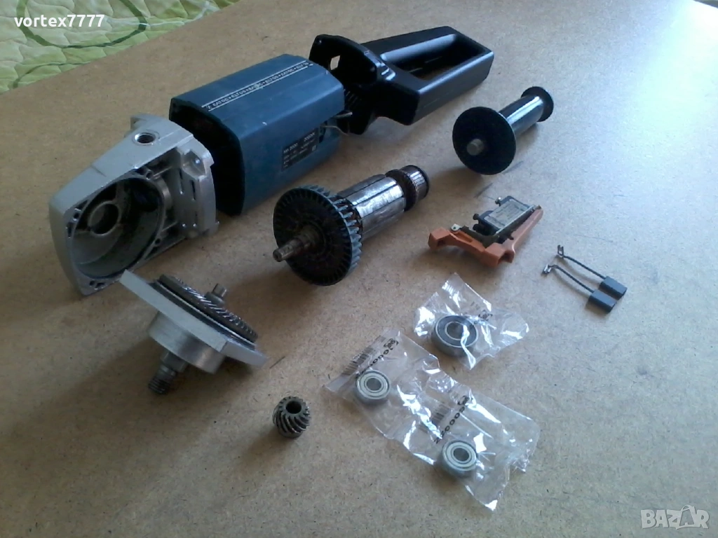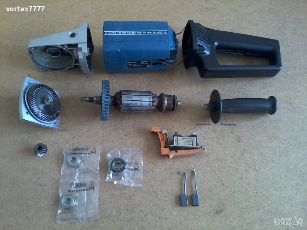 Реновиран ъглошайф Елтос М1800 високооборотен/ 8500 /.Основно разглобен, почистен, гресиран. Сменени лагери и четирите/ включително на короната/ .Почистени контакти на прекъсвача. Оригинални четки с изключвател на 70 %. Статора е от МА 2000, ротора и зъбната двойка са от М1800 /8500 оборота/. Работи много гладко. Без искрене и вибрации. Твърда цена.