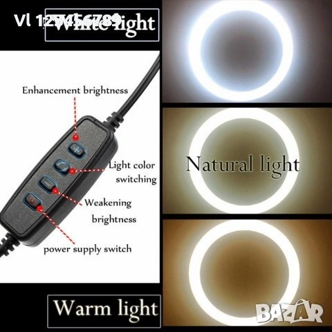 Стойка за селфи ринг с с ЛЕД светлина височина 210 см. - 38 лв