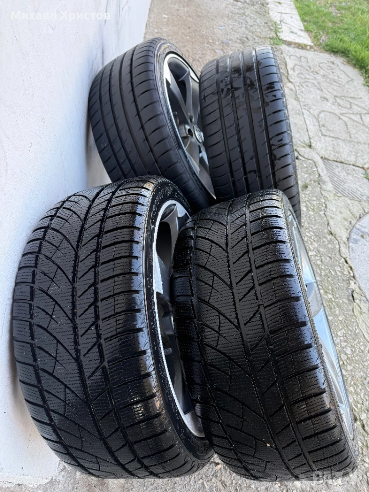 Продавам джанти ротор 19цола, 8,5джи, ет 32, с гуми 2 летни много добри и 2 зимни също много добри. Балансирани, готови за монтаж, със втулки на 57.1мм, карани на пасат б8. Една от джантите има заварка.