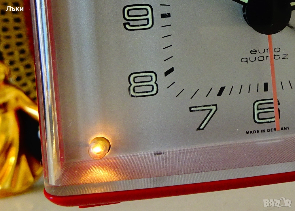 in Germany на три места.Алармата включва перфектно.Часовникът работи