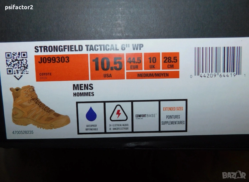 Технологията на междинната подметка TOUGHFRAME™ е включена в този дизайн на Strongfield и има медиални и странични стабилизиращи рамена, които действат като екзоскелет, за да осигурят трайна защита. Гумата Merrell M Select™ GRIP настройва всяка от противоплъзгащите външни подметки, за да осигури надеждно сцепление, което наистина се захваща с различни хлъзгави или неравни повърхности. Здравите гумени външни подметки са също така устойчиви на топлина, тъй като осигуряват защита на краката за кратки периоди на директен контакт, достигащи или надвишаващи 500 градуса по Фаренхайт (260 градуса по Целзий). Те имат 3,5 мм дълбочина на грайферите, за да ви осигурят правилна стабилизация отдолу на краката.