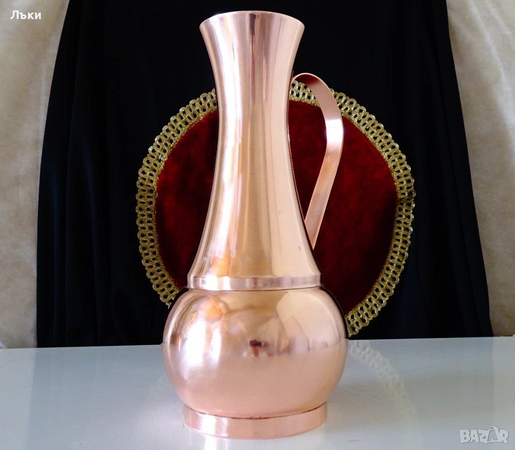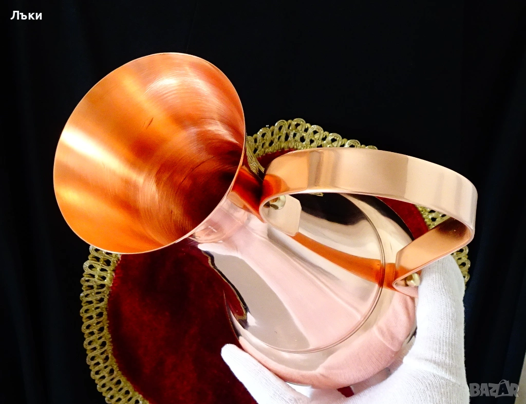 високо качествена масивна чиста червена мед с ослепителен блясък.Има извита и
