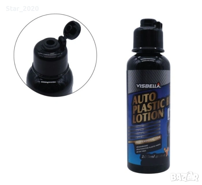 Специално формулиран лосион Visbella за възстановяване на избледнели черни пластмасови, гумирани части и детайли.