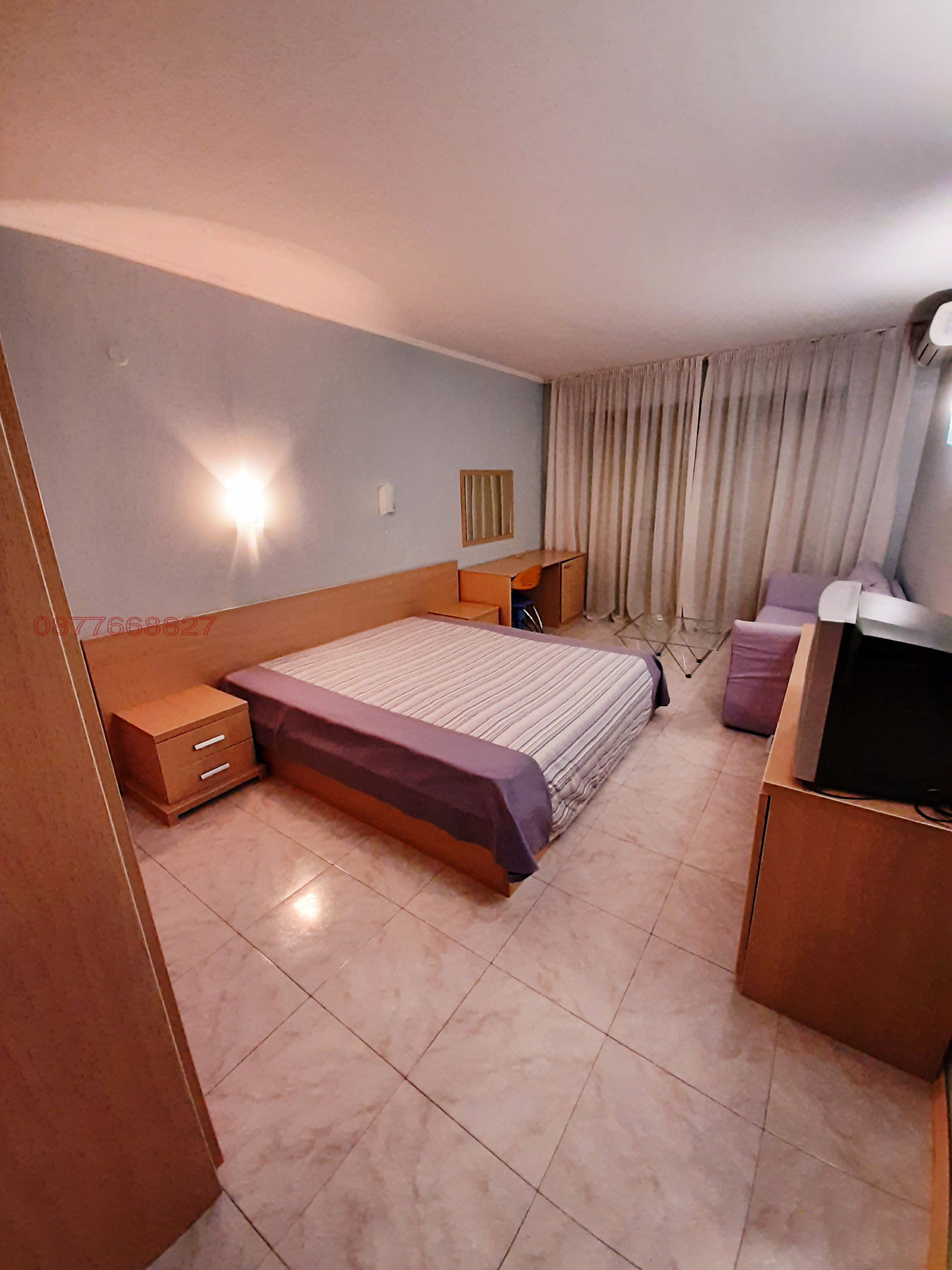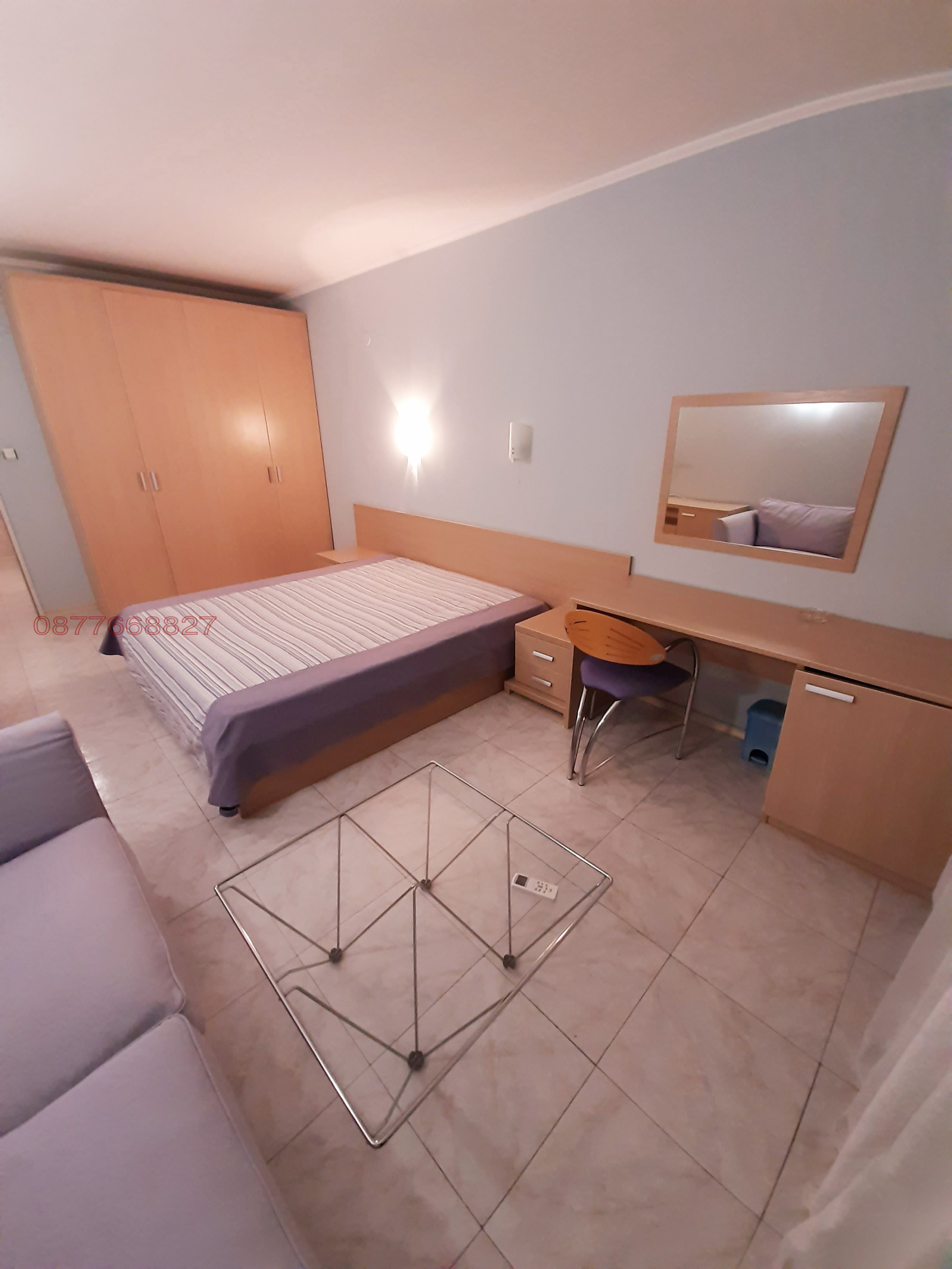 Голяма спалня, коридор ,баня с тоалетна,има прозорци,но няма тераса! Обзавеждане; Спалня, гардероб, скрин, разгъваем диван с маса за хранене, телевизор. Има хладилник, пералня, печка,отопление с климатик. От снимките може да добиете по-добра представа за имота. Намира се, на ул. Струма 23 и Еделвайс близо до главната улица на града ( Отец Пайси) и общината, както и до двата плажа на градът; Северният и Южният плаж. Апартамента е в комплекс на 2 ет. жилищен ет. от 7 етажа в сграда с ограничен достъп. Има асансьор и редовно почистване на общите части, сградата има такса поддръжка която се поема от собственика. В сградата има Хранителен магазин Жанет (бившият Черно Море) Сладкарница Захаро, Зъболекарски кабинет, Адвокатска Кантора, Салон за красота, Казино, банков клон, Железария. За допълнителна информация, може да пишете имейл или лс. или да звъннете на посоченият номер за контакт директно със собственика.
