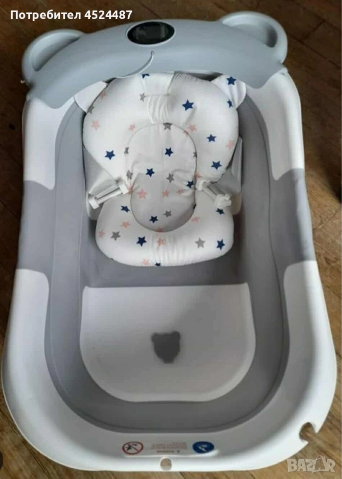 Сгъваема бебешка вана с термометър и възглавница → Обява 53817767