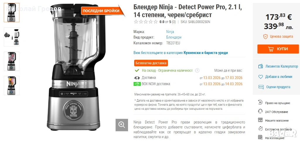 Блендера е използван има следи от употреба, но е в перфектно техническо състояние!
