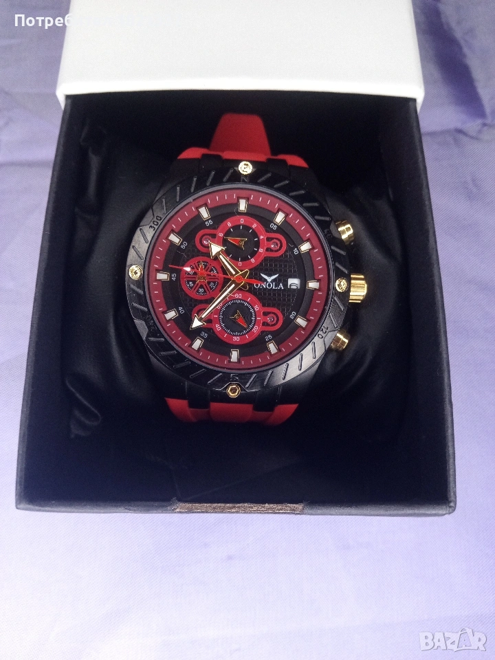 Луксозен мъжки часовник - кварцов, водоустойчив, светещи стрелки, силиконова каишка закопчалка тип катарама