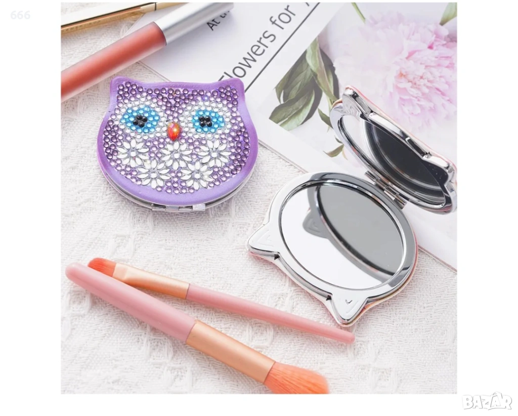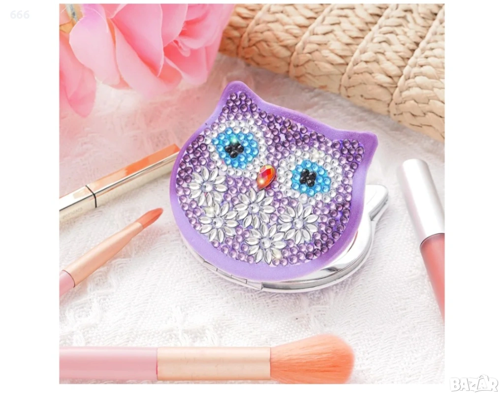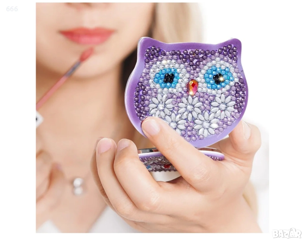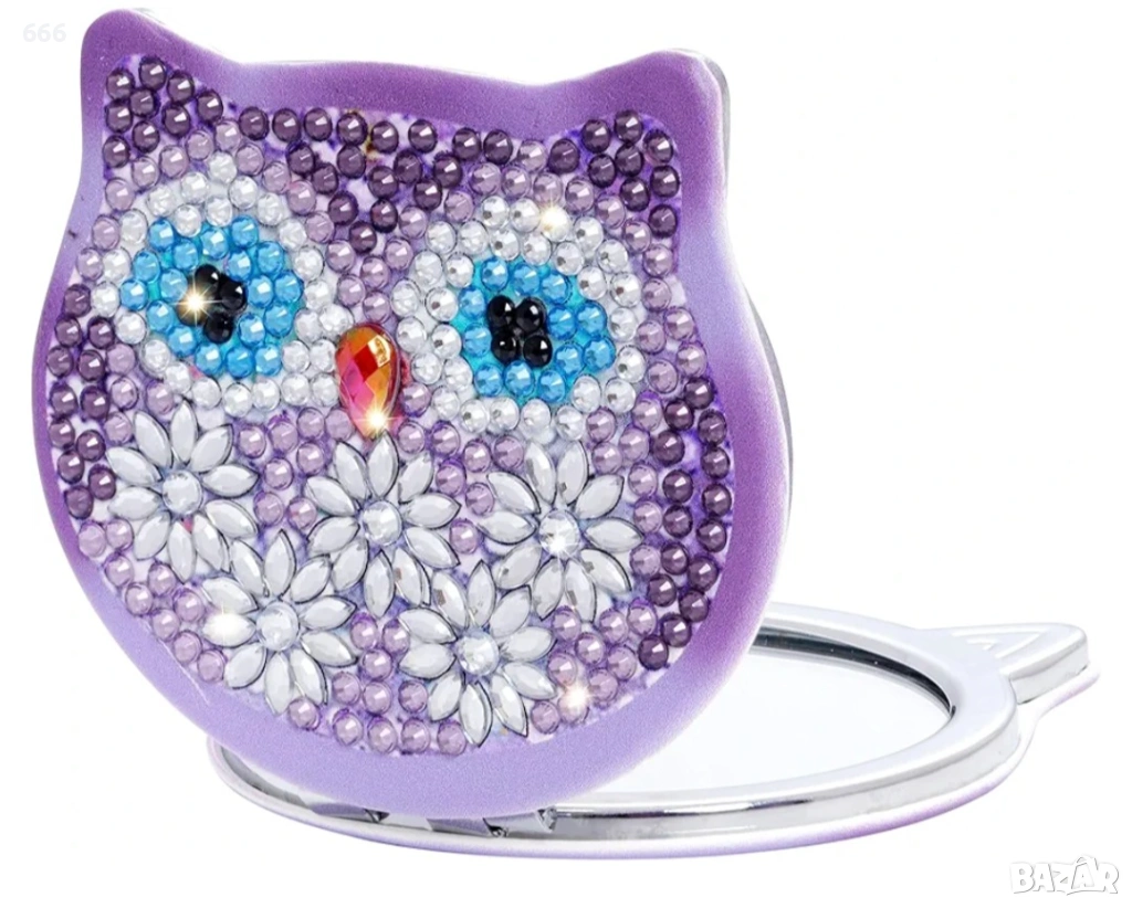 Сладък и прекрасен дизайн във формата на бухал: Това компактно огледало е със сладък дизайн във формата на бухал, много атрактивен. Тези джобни огледала с диамантена боя предлагат широко приложение - от ежедневен грим до пътуване. Идеалният избор за подарък за вас или за някой специален в живота ви, който търси нещо забавно и полезно.