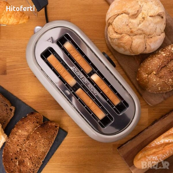 - Тостер с дигитален дисплей, който показва степента или режима на работа на препичане и обратното броене до края. Тостер с висока мощност 1500W с два дълги слота за 4 тоста.